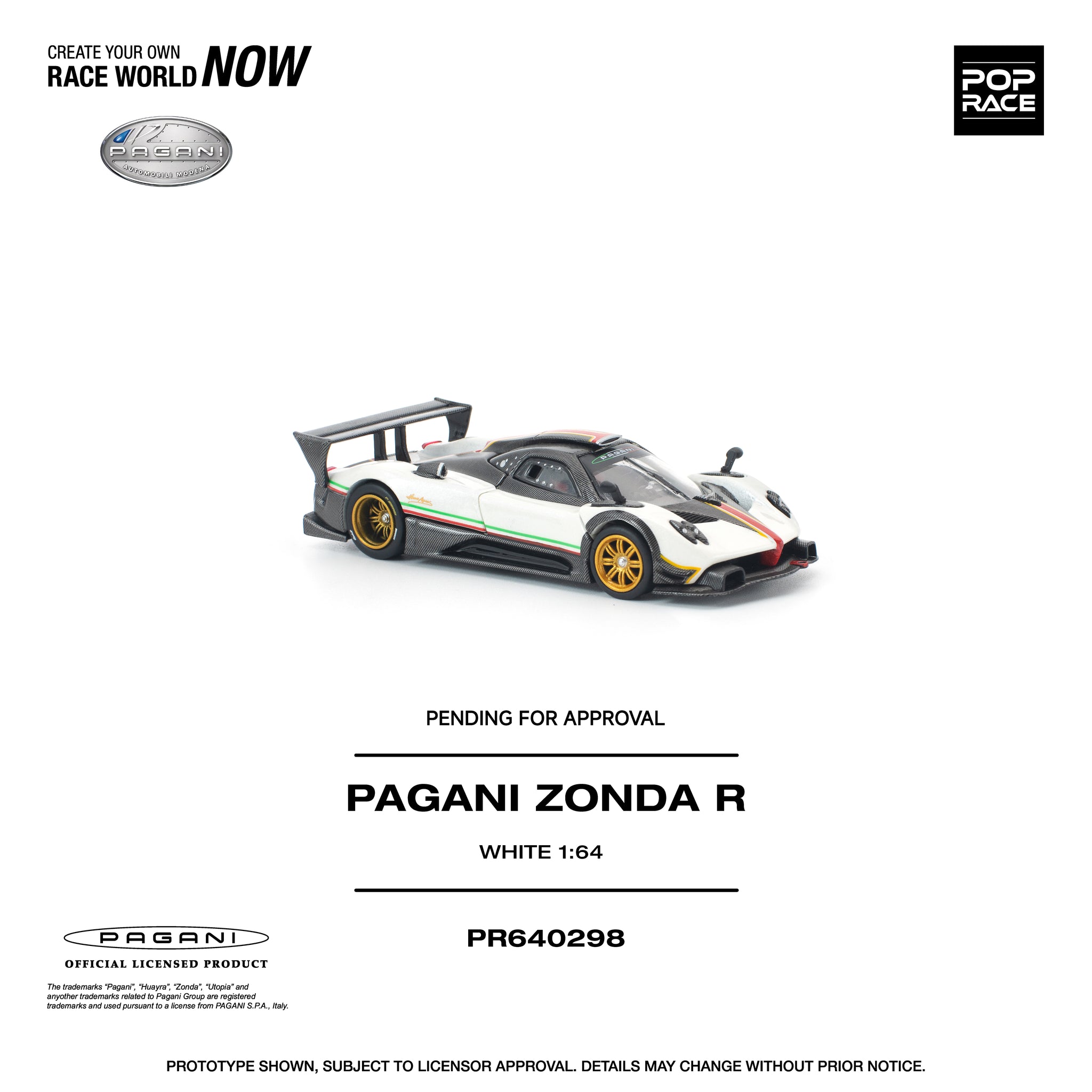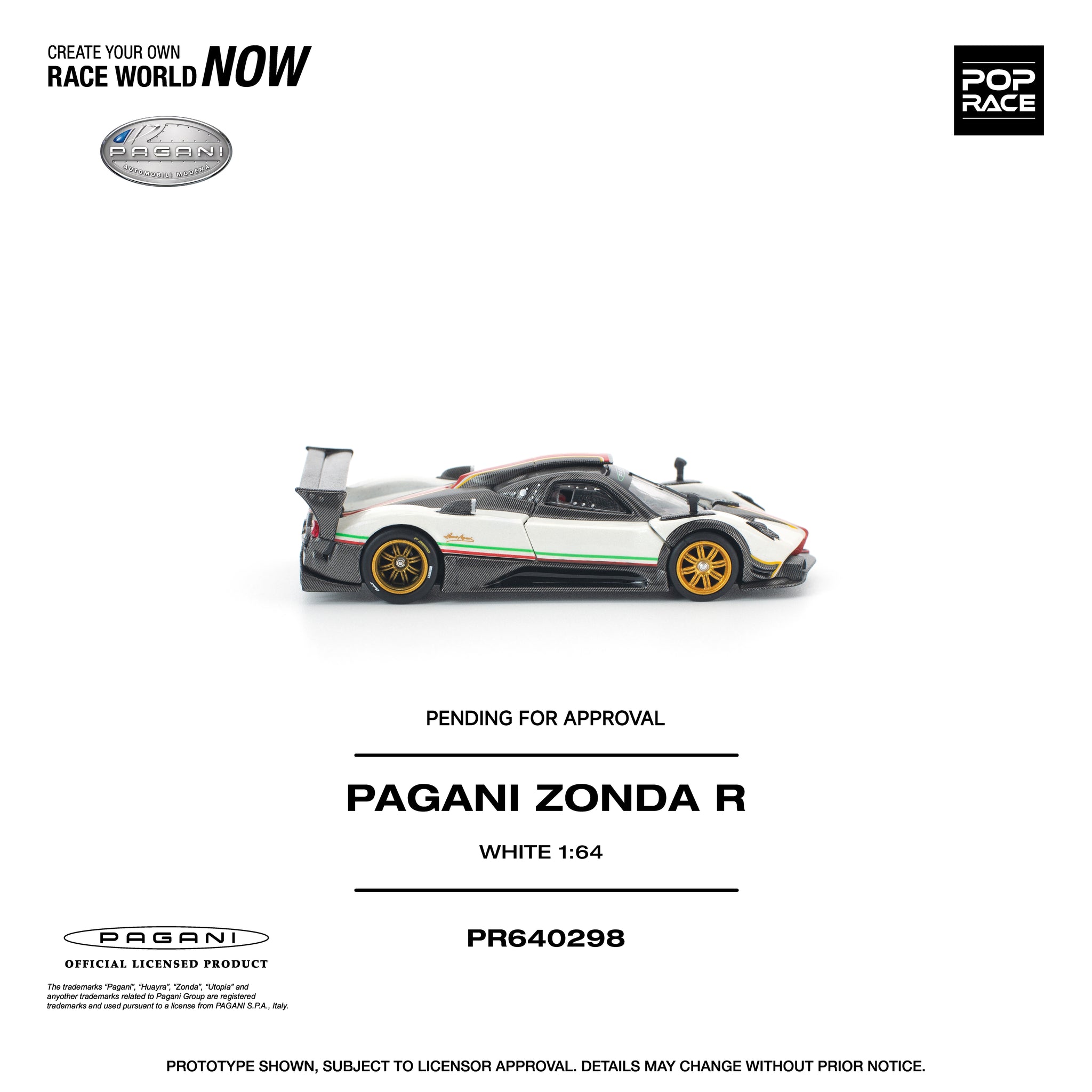 (Pre-Order) 1:64 Pagani Zonda R -- White -- Pop Race