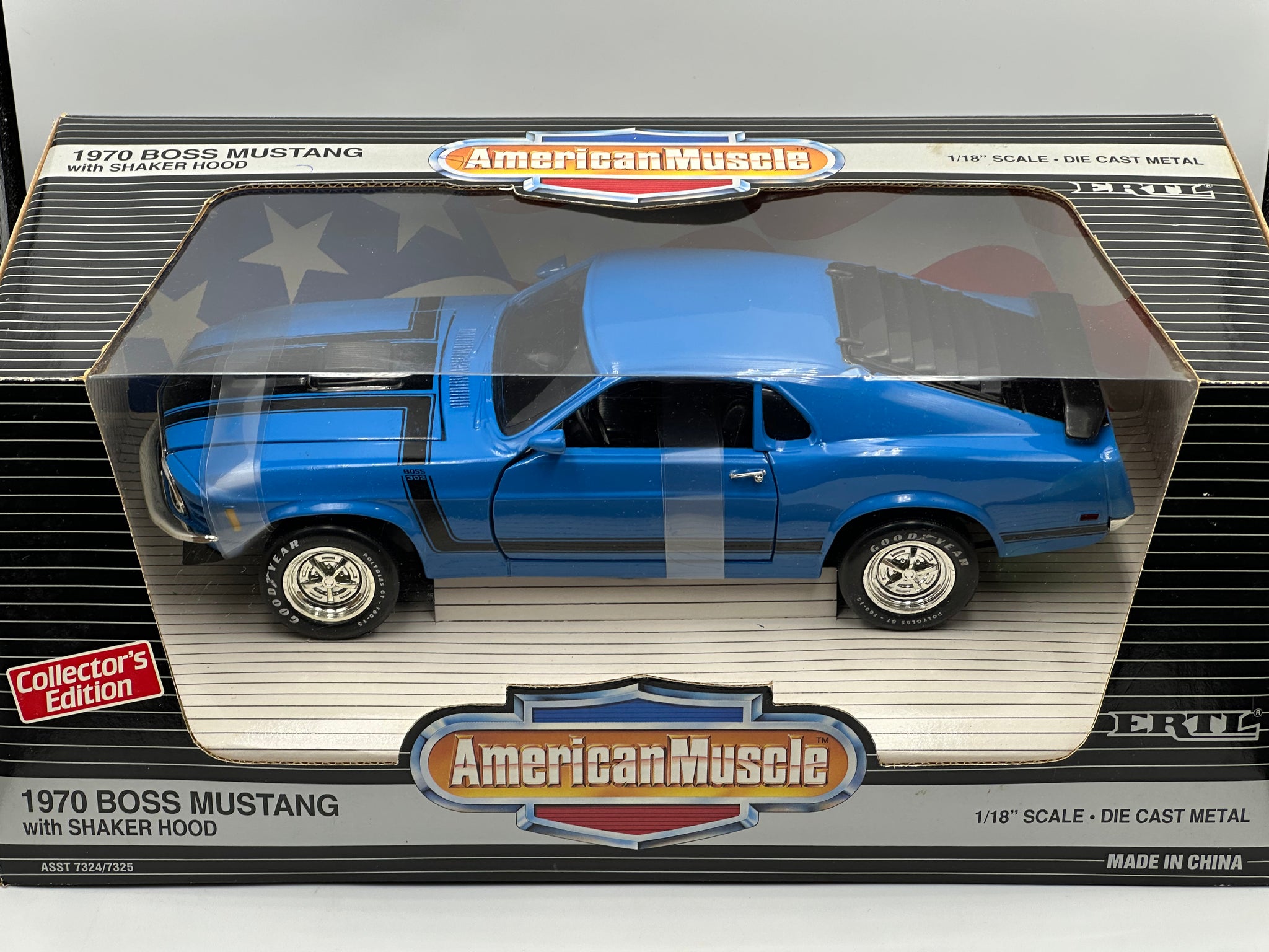 1:18 1970 Ford Mustang Boss 302 -- Blue -- American Muscle