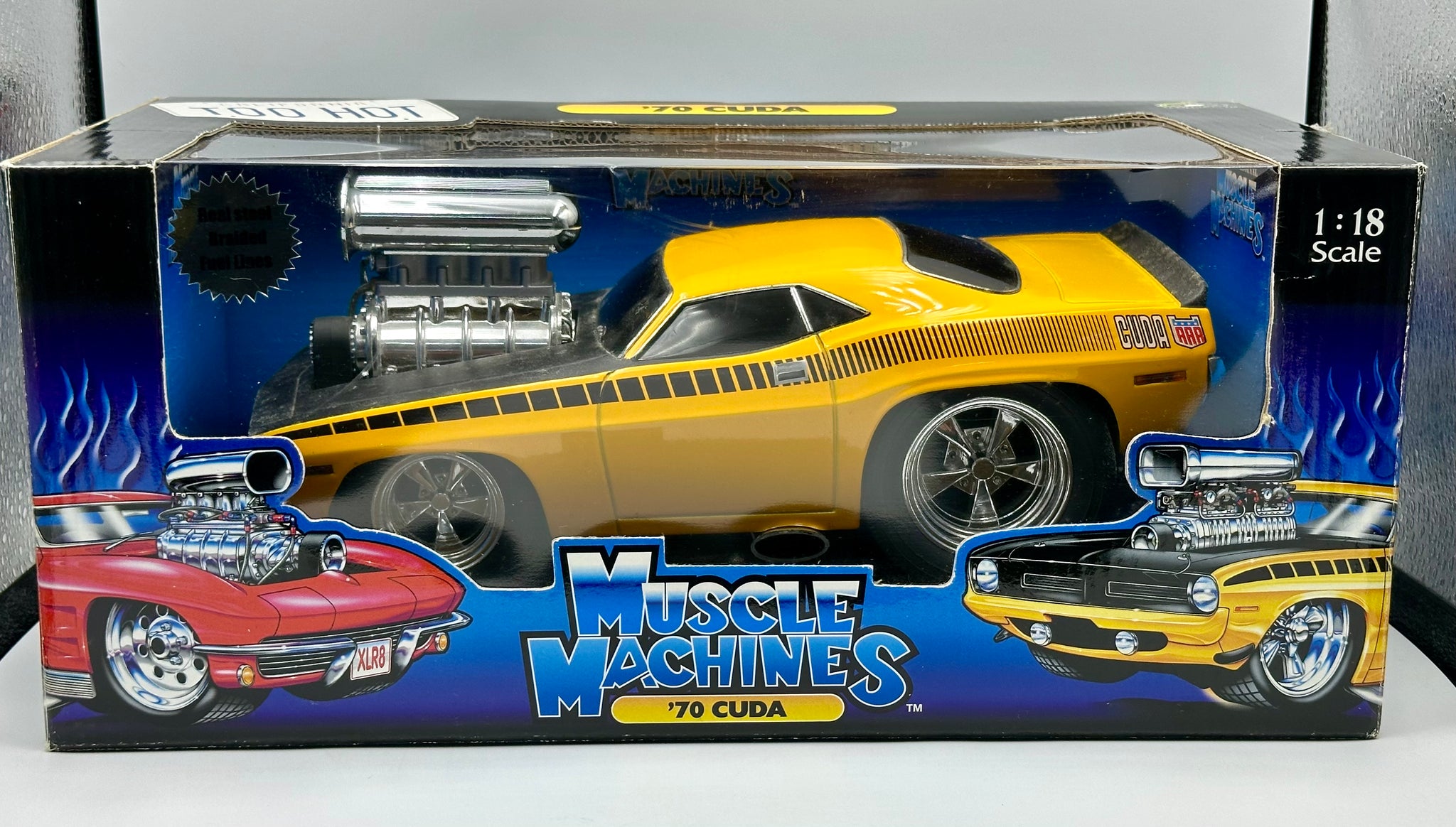 1:18 1970 Plymouth Hemi Cuda -- Yellow w/Black Stripe -- Muscle Machines