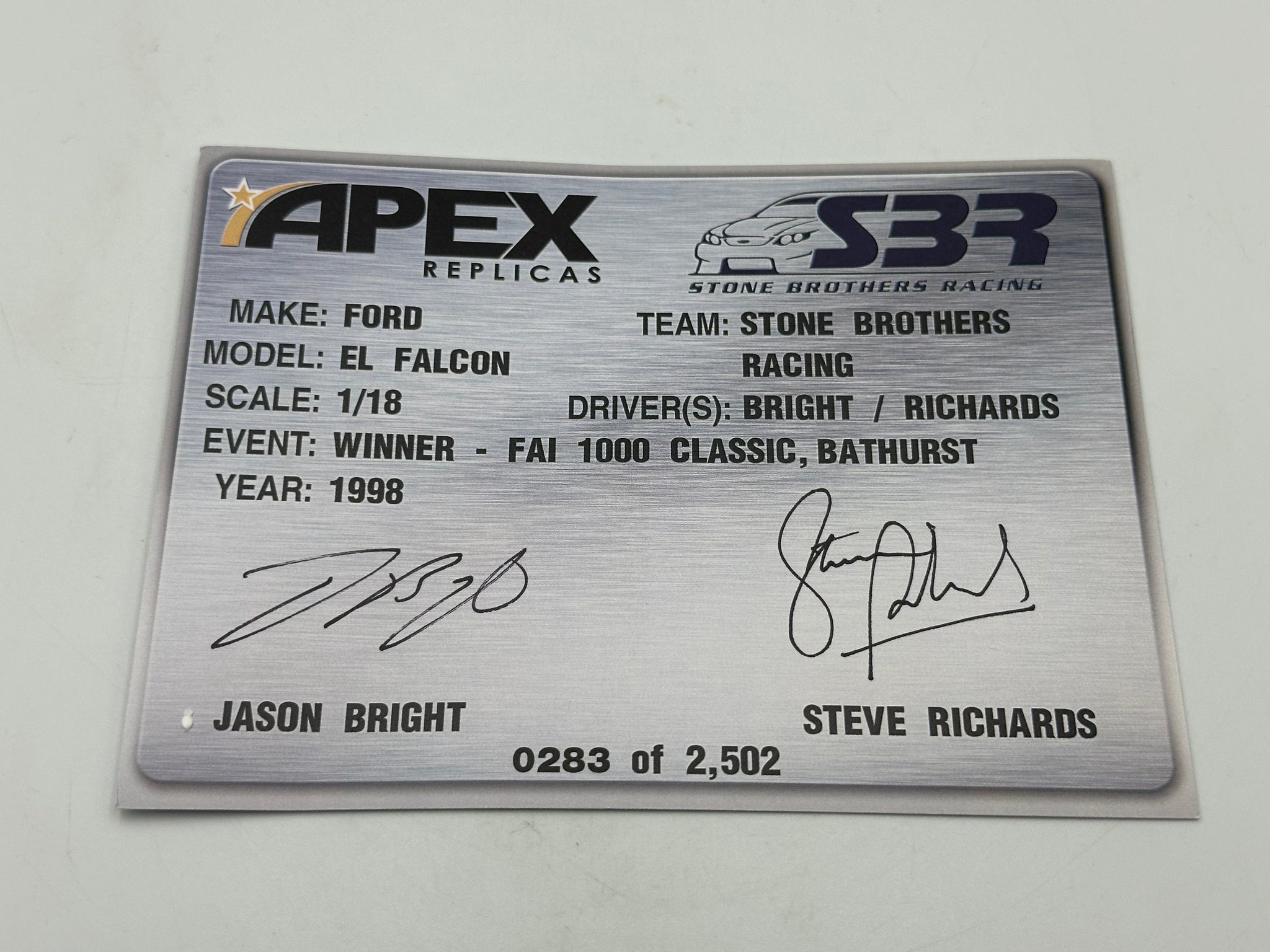 1:18 1998 Bathurst Winner -- Bright/Richards -- Ford EL Falcon -- Apex Replicas