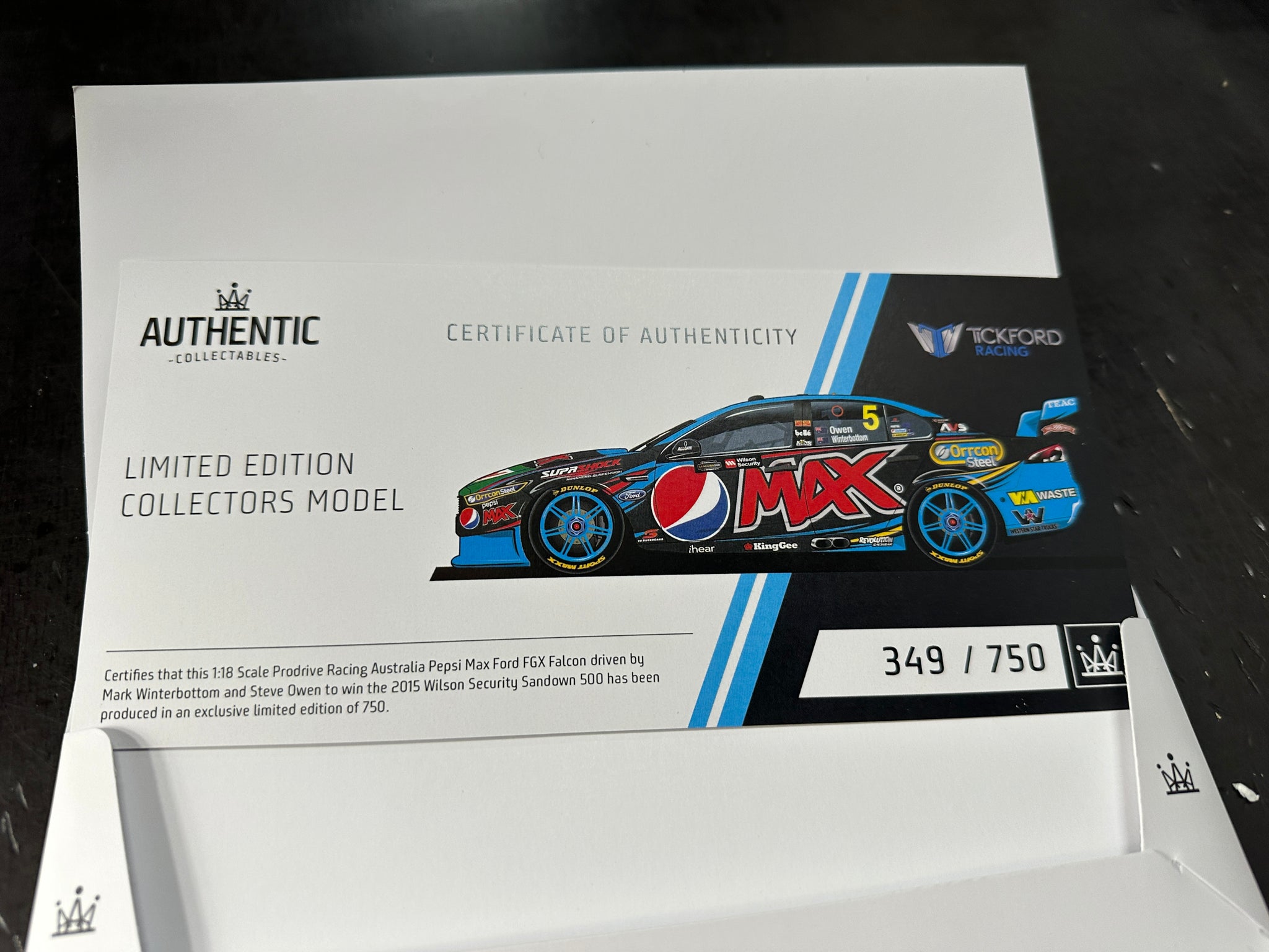 1:18 2015 Sandown Winner -- Winterbottom/Owen Prodrive -- Authentic Collectables