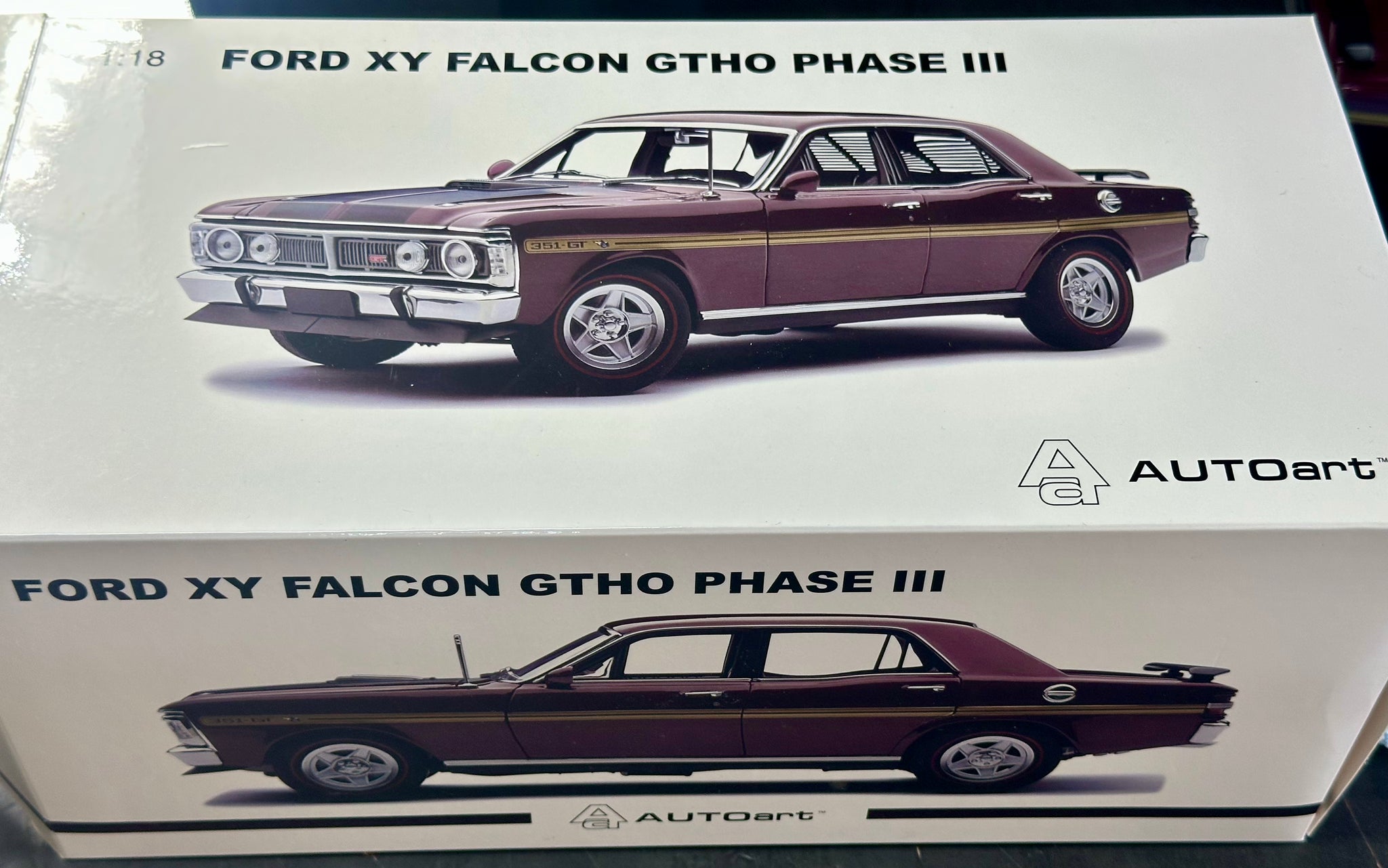 1:18 Ford XY Falcon GTHO Phase 3 -- Vintage Burgundy w/Gold Stripes -- Biante