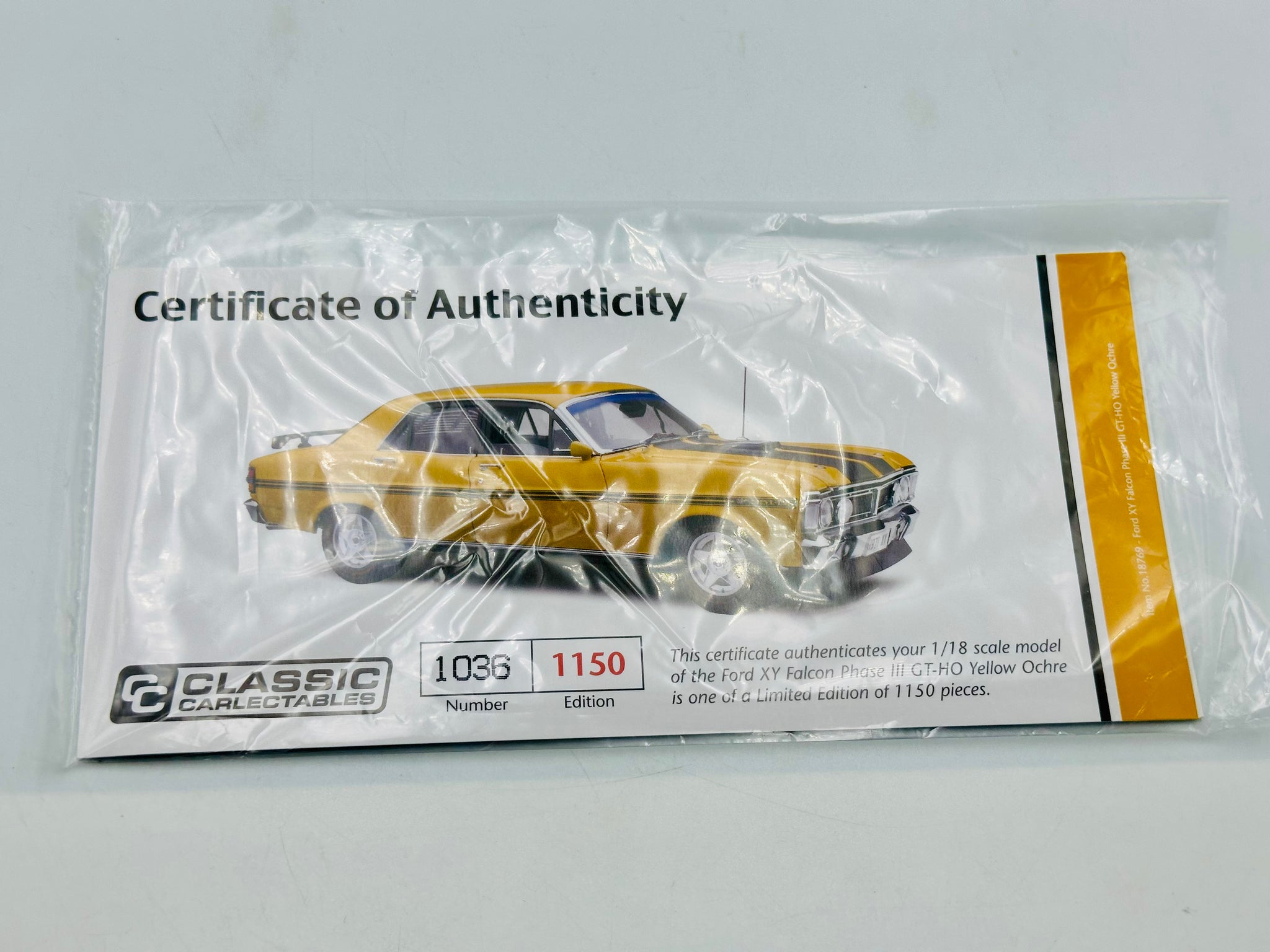 1:18 Ford XY Falcon Phase III GT-HO -- Yellow Ochre -- Classic Carlectables