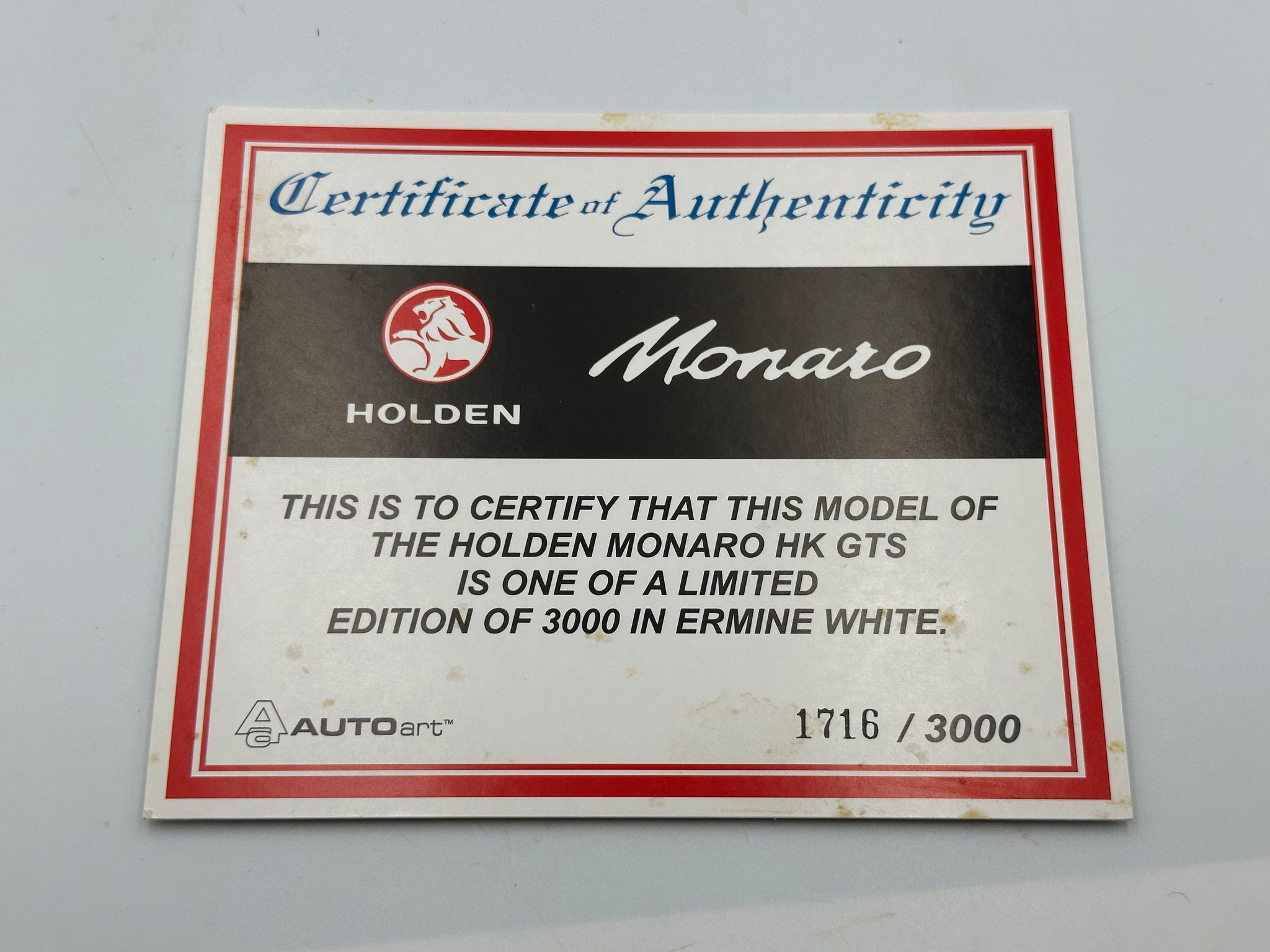 1:18 Holden Monaro HK GTS -- Ermine White -- Biante/AUTOart 72443