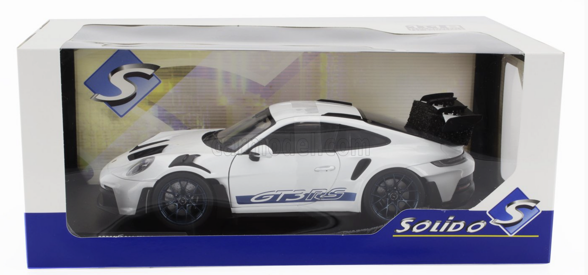 1:18 Porsche 911 (992) GT3 RS 2024 -- White w/Blue Stripes -- Solido