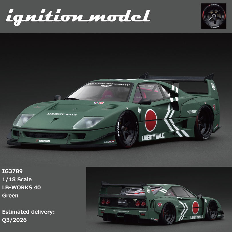 (Pre-Order) 1:18 Ferrari F40 by Liberty Walk -- Matte Green -- Ignition Model IG3789