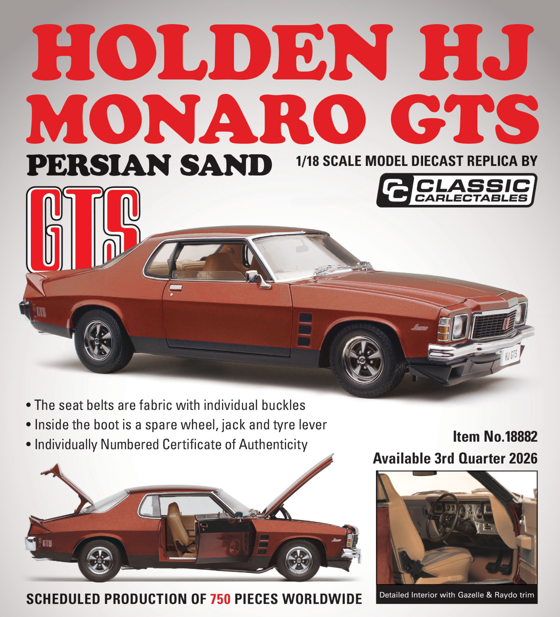(Pre-Order) 1:18 Holden HJ Monaro GTS Coupe -- Persian Sand -- Classic Carlectables