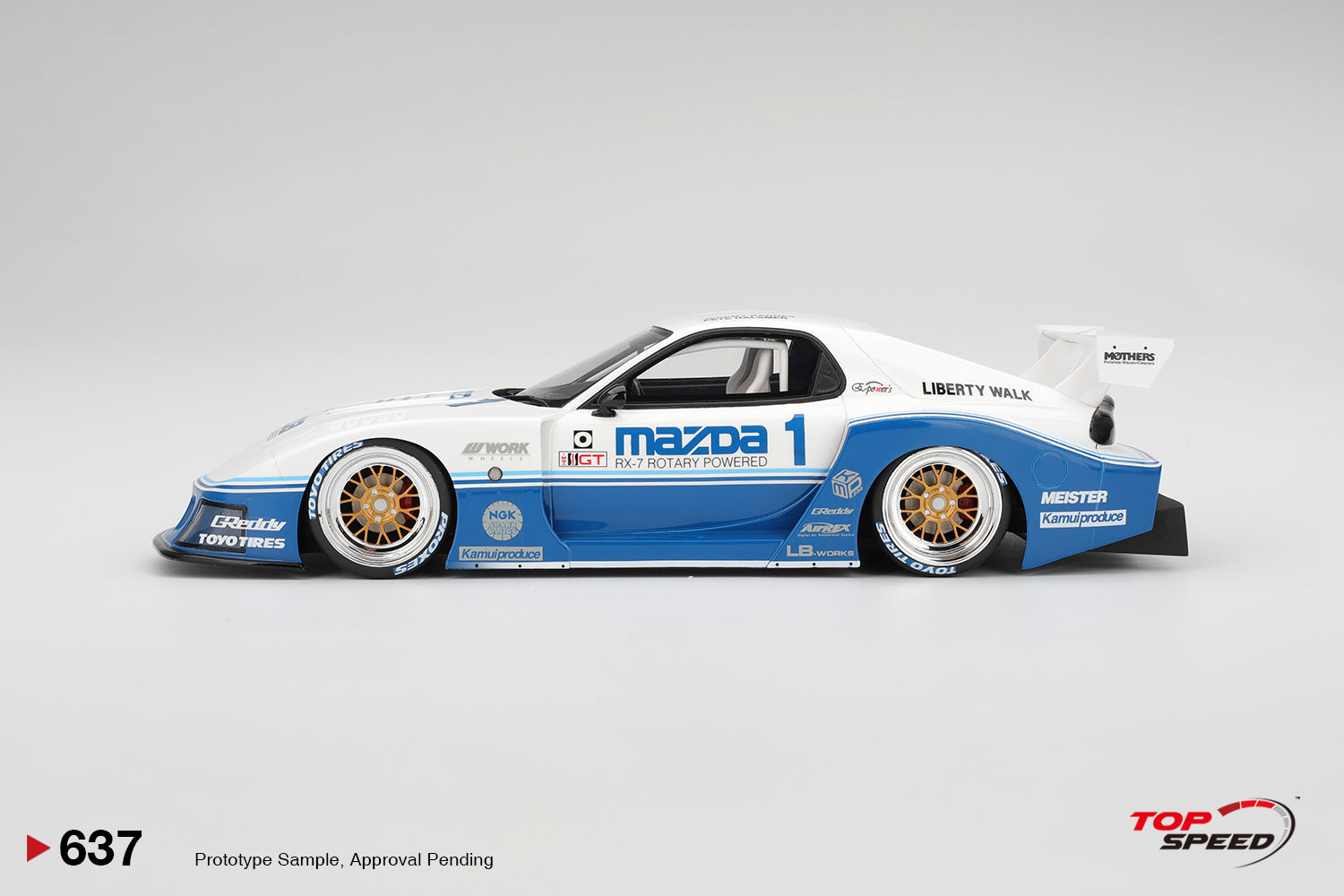 (Pre-Order) 1:18 Mazda RX-7 LB-Super Silhouette -- #1 Blue/White IMSA -- TopSpeed Model
