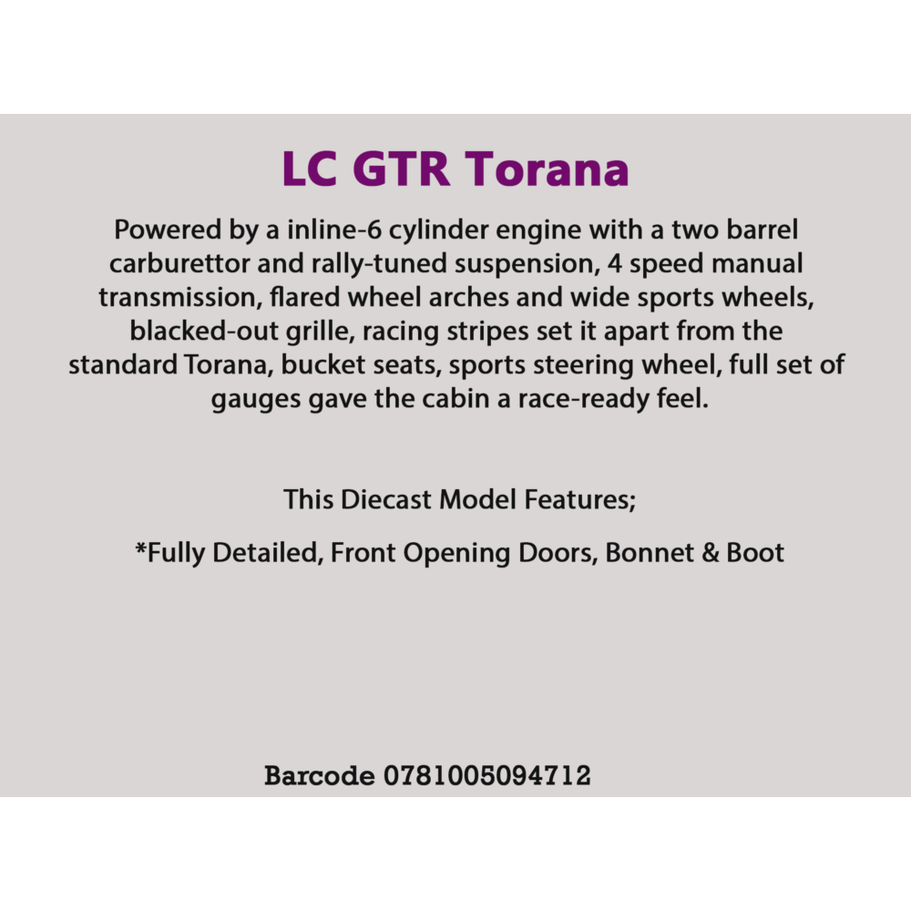 - Make/Model: Holden LC Torana GTR