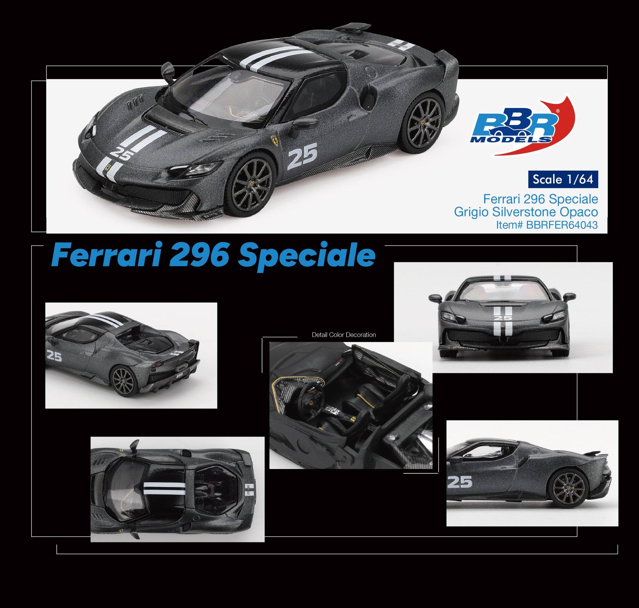 (Pre-Order) 1:64 Ferrari 296 Speciale -- Grigio Silverstone Opaco (Grey) -- BBR
