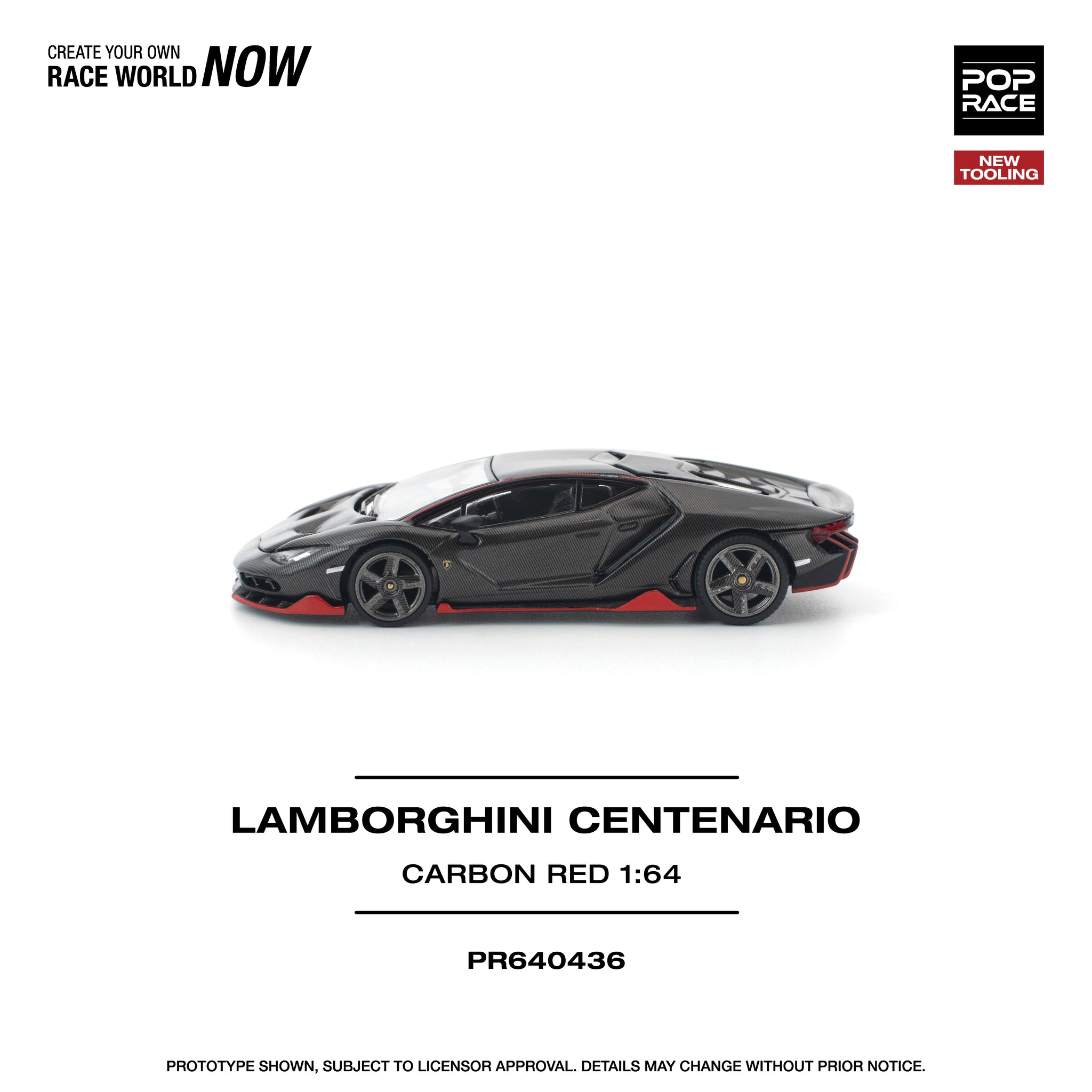 (Pre-Order) 1:64 Lamborghini Centenario -- Carbon/Red -- Pop Race