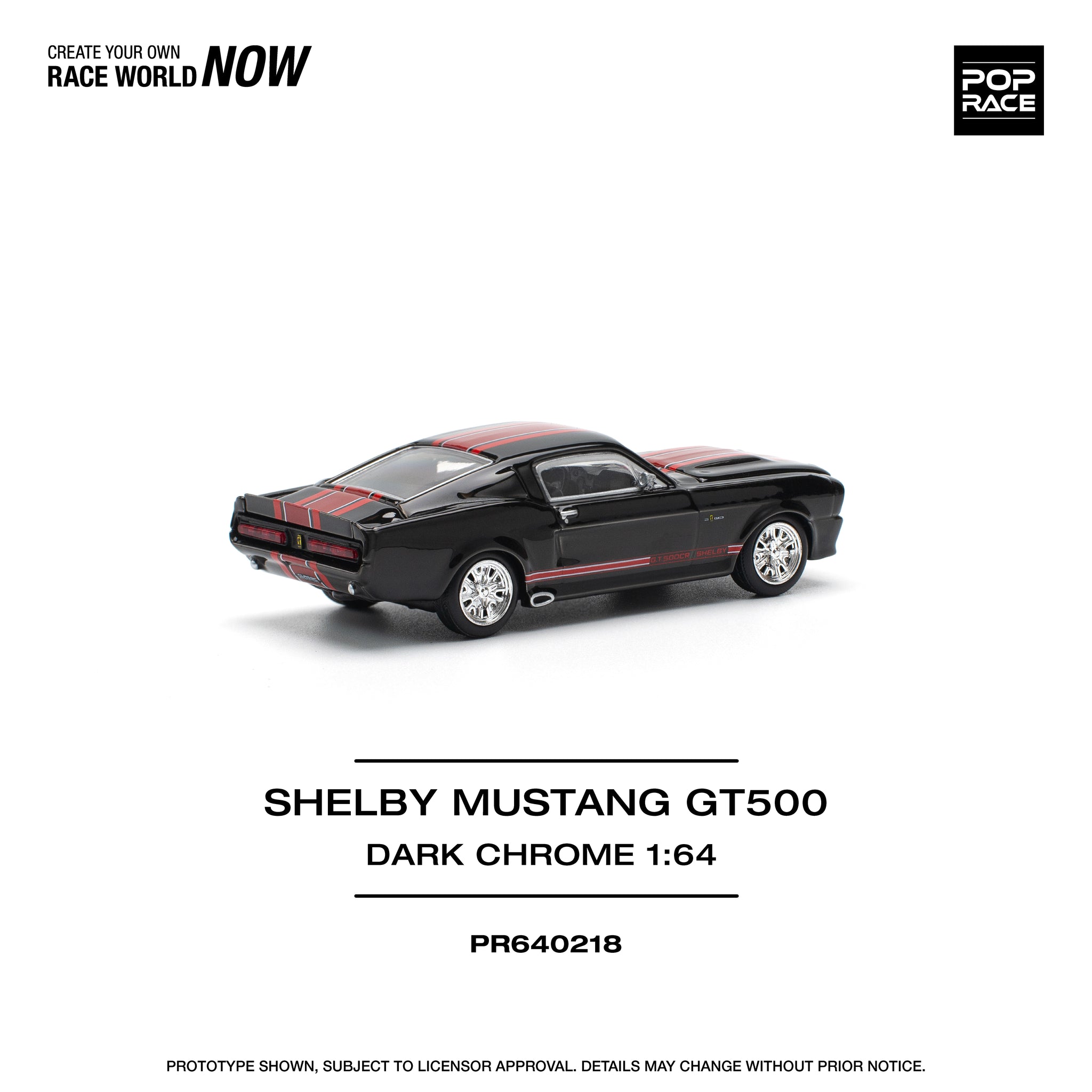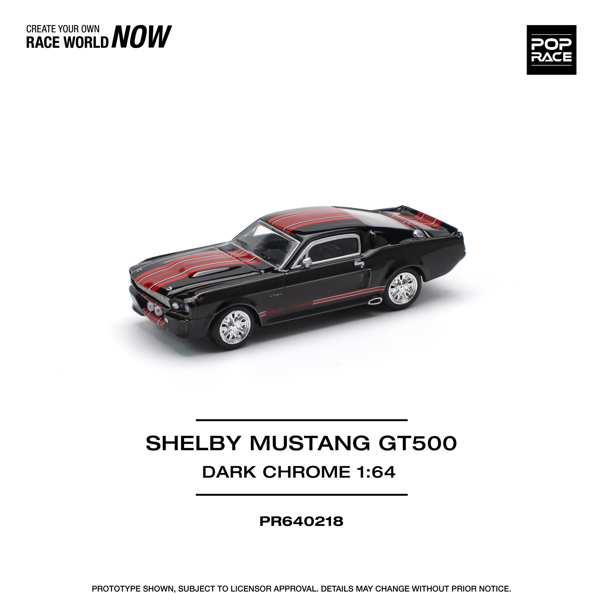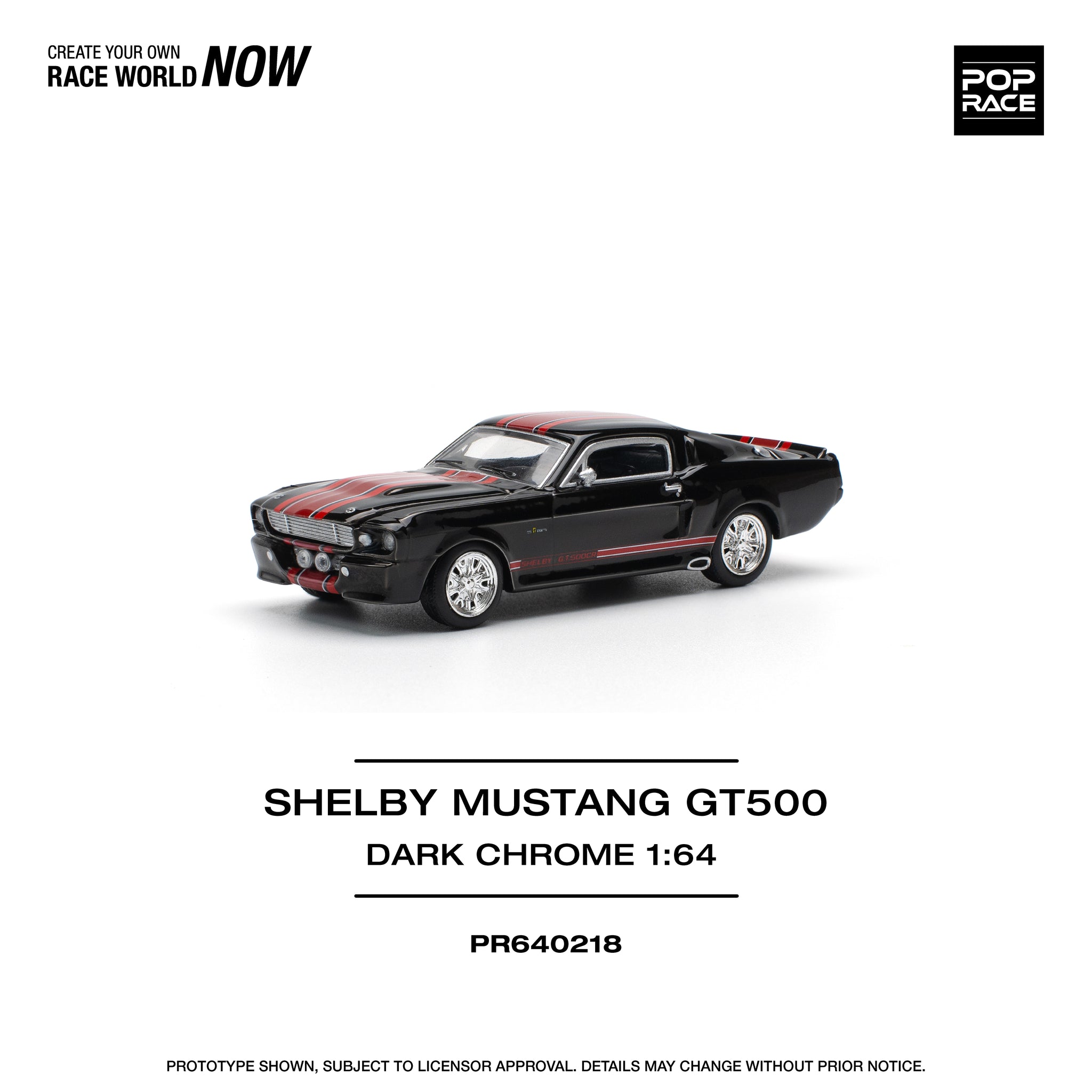 1:64 Shelby Mustang GT500 -- Dark Chrome Black w/Red Stripes -- Pop Race